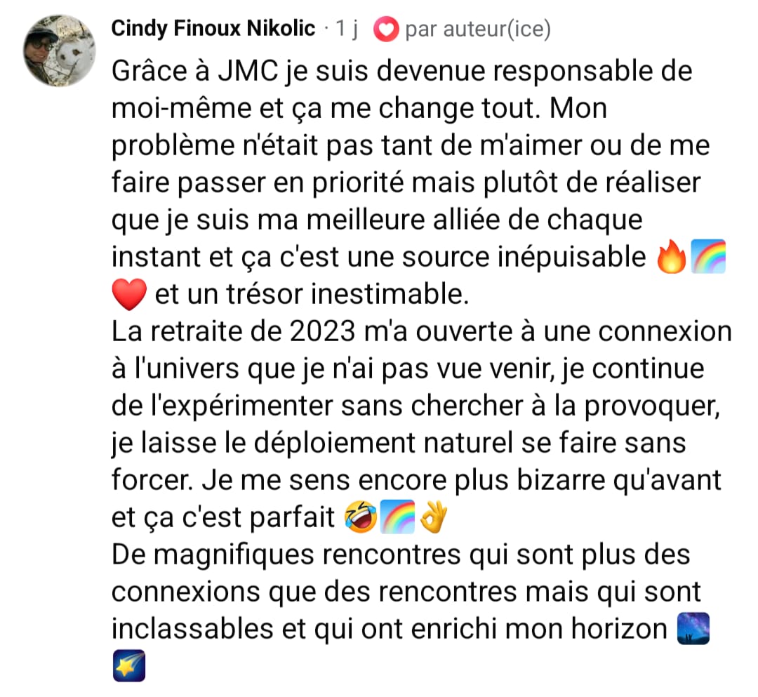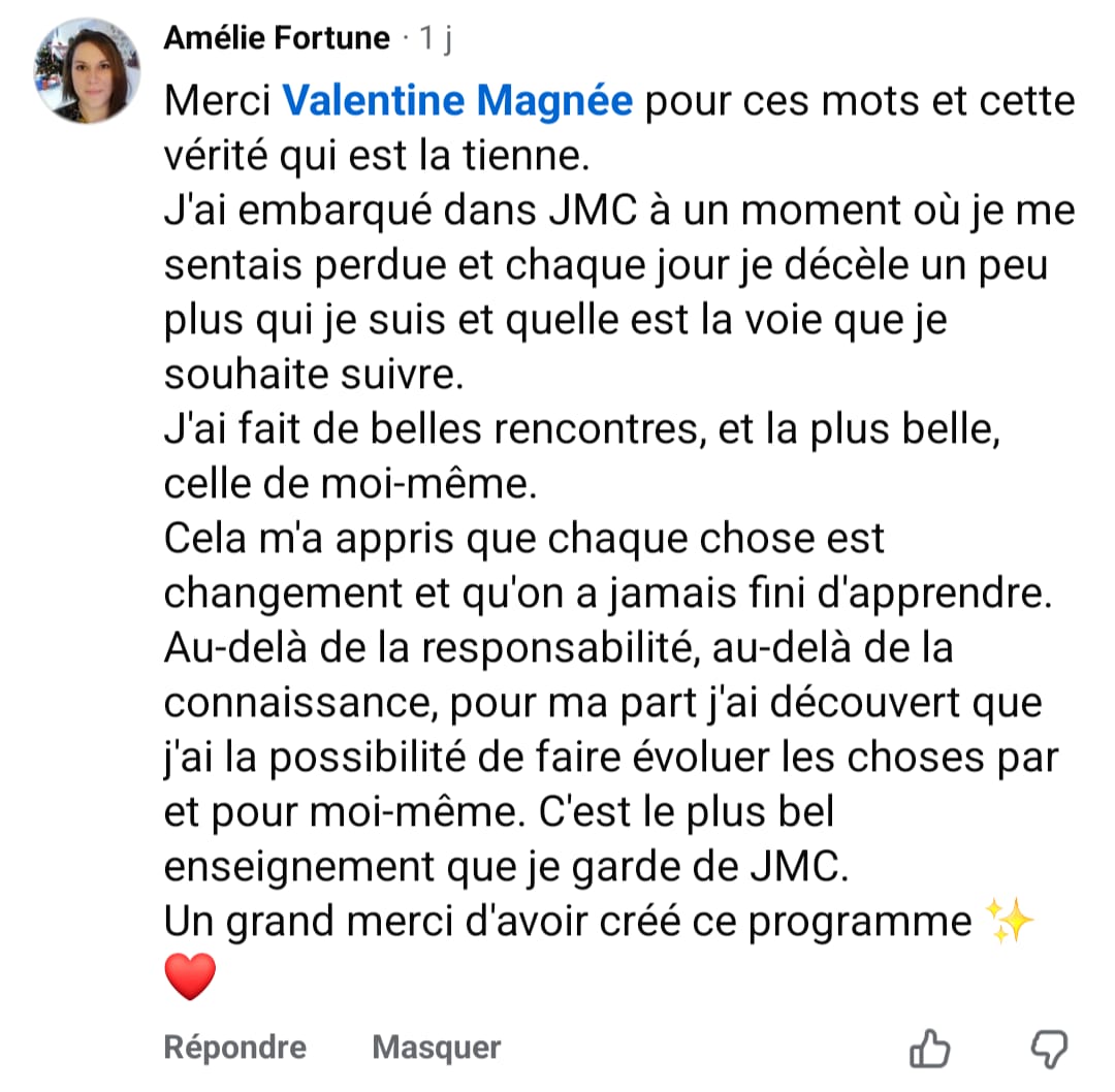 JMC est pour toi si tu sens que tu t'es clairement oublié ces dernières années et qu'il est temps de te choisir concrètement, sans pour autant te faire violence.